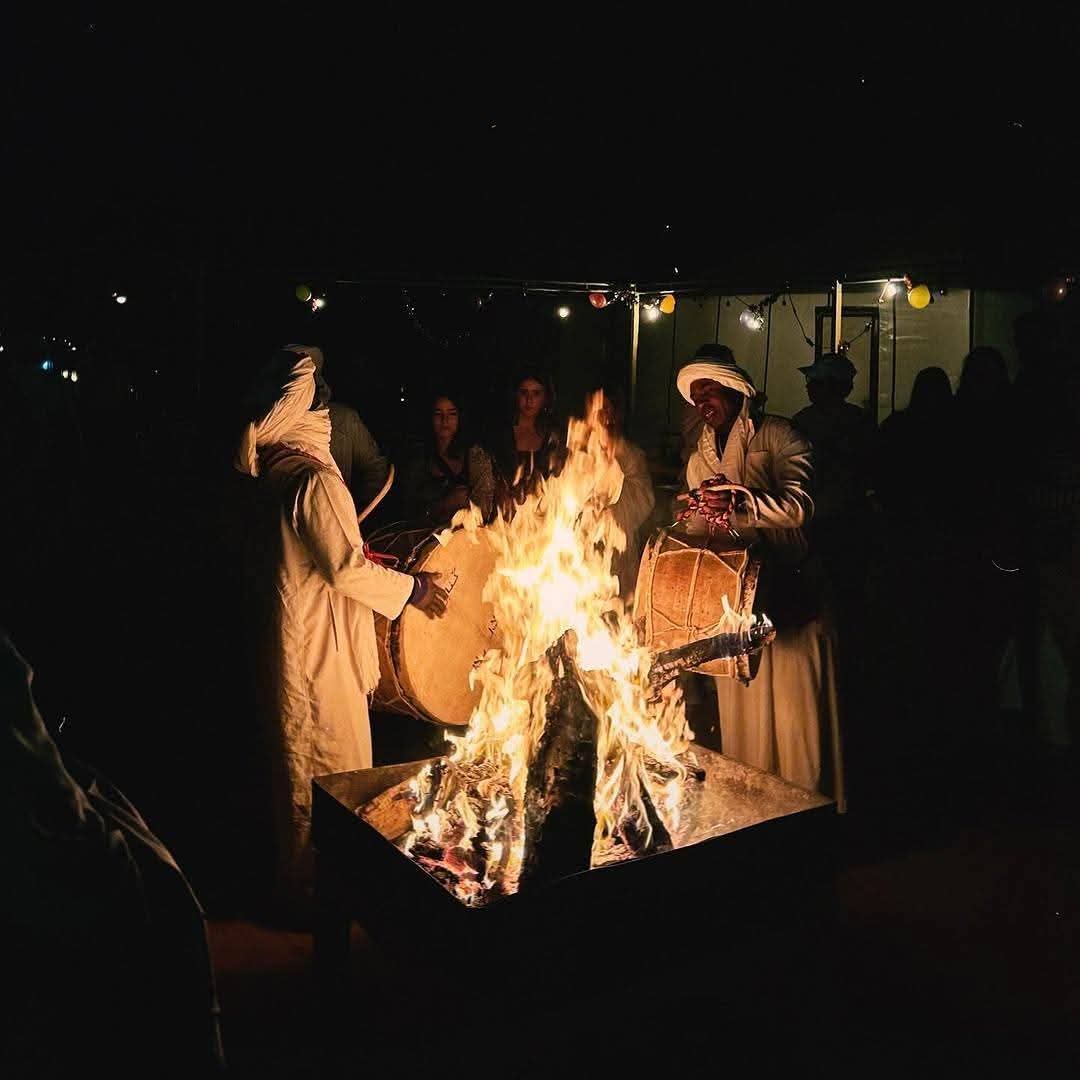 This day is dedicated to discovering the marvels of the Sahara and the towering dunes of Erg Chebbi. Explore the surrounding desert landscapes, visit nomadic families, and stop in the village of Khamlia to enjoy the spiritual rhythms of Gnawa music. Continue to the Tafilalet region to explore ancient sites and the ruins of Sijilmassa. After a traditional local lunch such as Medfouna (Berber pizza), return to the dunes. In the late afternoon, embark on a camel trek across the golden sands to witness a spectacular sunset. Spend the night in a luxury desert camp, enjoying a traditional dinner, mint tea, Berber music, and stargazing beneath the Sahara sky.